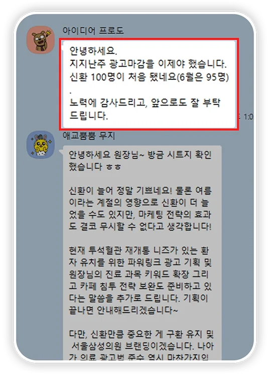 “병원마케팅 시작 후 4개월 동안 신환 수가 300% 늘었습니다.”